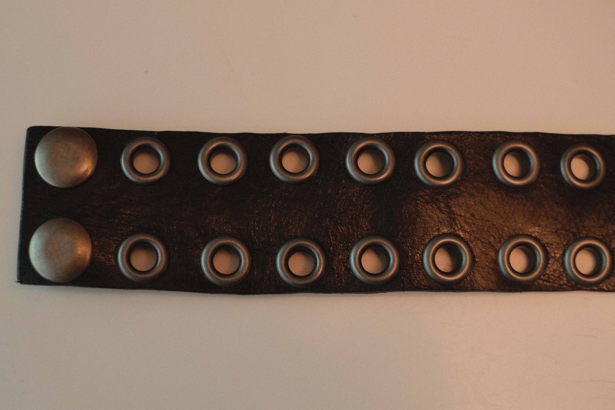 1.5 inch montana leather cuff with antique eyelets.