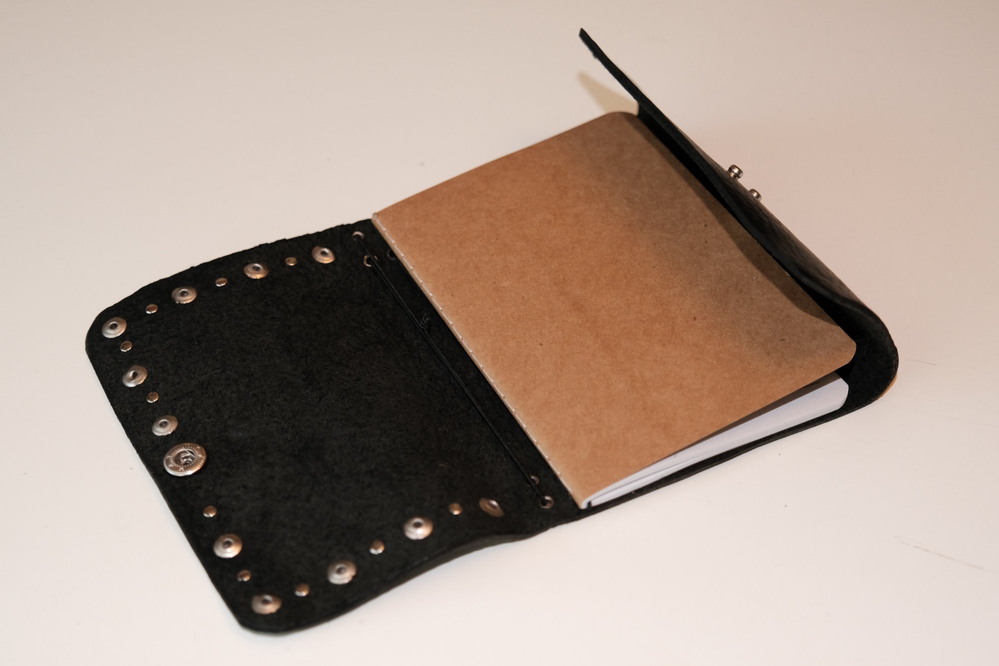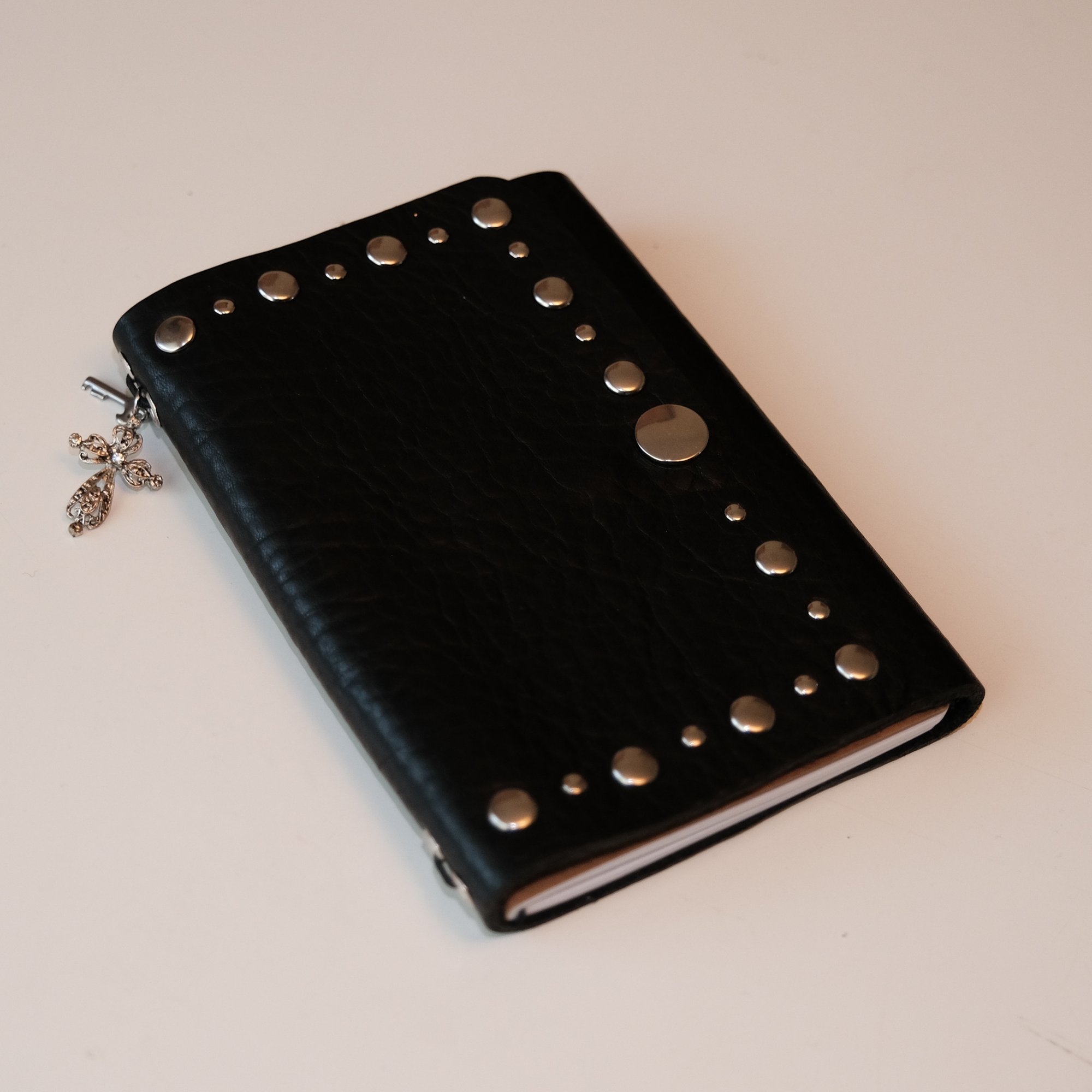 mini 4 x 6 handmade black leather journal cover. fits up to two 4x6 journals or even a passport inside! adorned with a cross and key charm.